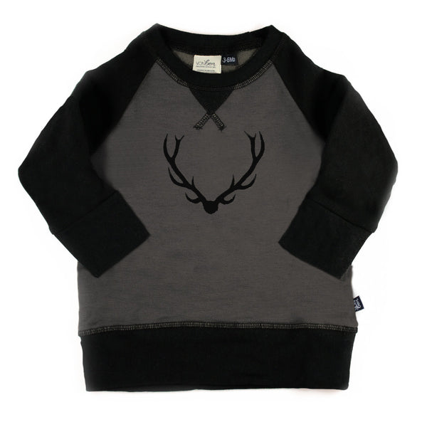 Gray fleece bamboo raglan sleeves, cuff & neck binding. 66% Rayon (Bamboo), 28% Organic Cotton, 6% Spandex.